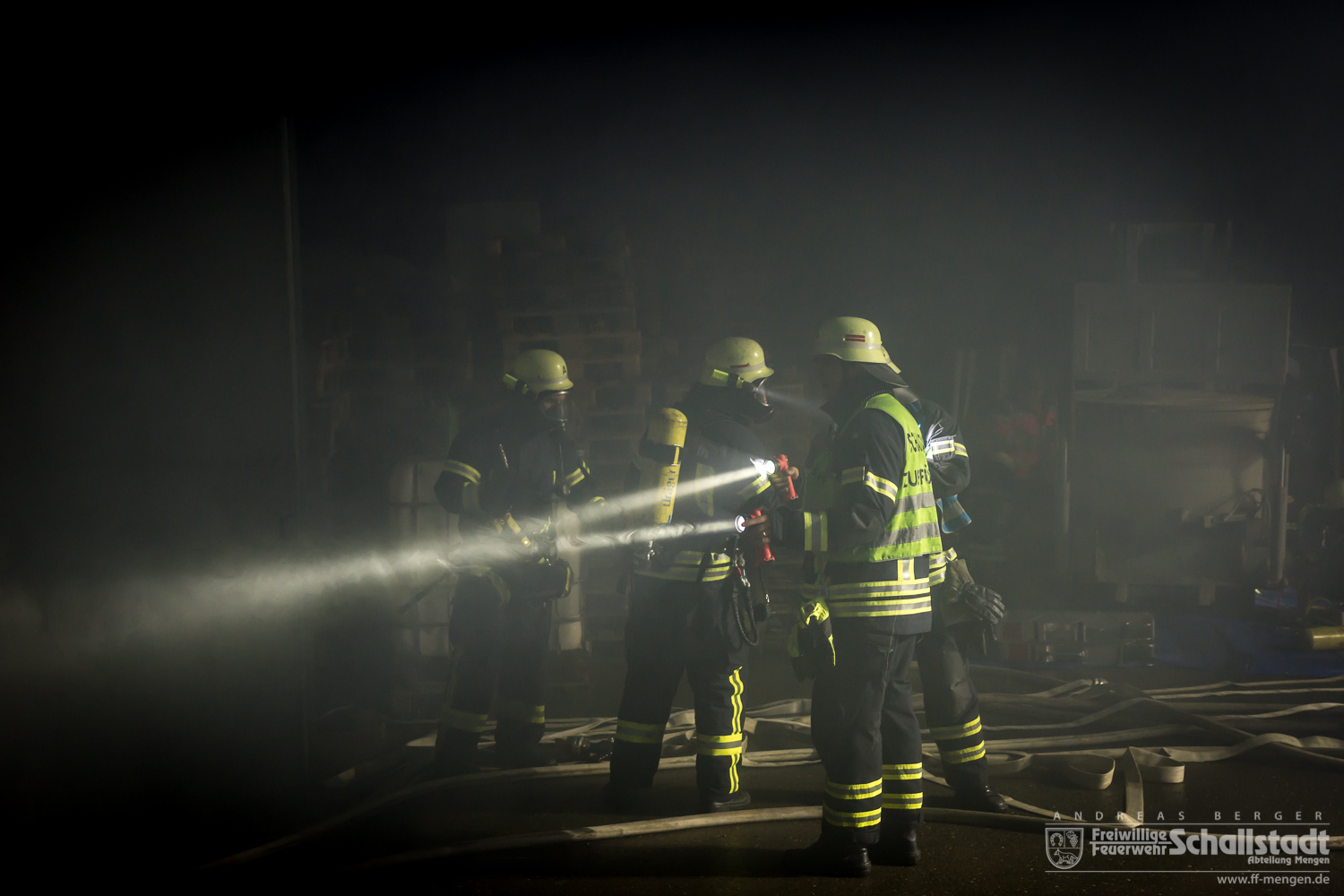 Die Abteilung Schallstadt war aufgrund der kurzen Anfahrt bereits sehr schnell vor Ort. Obwohl der Einsatz als reiner Brandeinsatz gemeldet wurde, stellte sich die Lage beim Eintreffen an der Einsatzstelle weitaus vielschichtiger dar. Zusätzlich zum Brand in einer Produktionshalle war auch ein Mitarbeiter des Unternehmens „schwer verletzt und unter einem 5 Tonnen schweren Stapler eingeklemmt“.